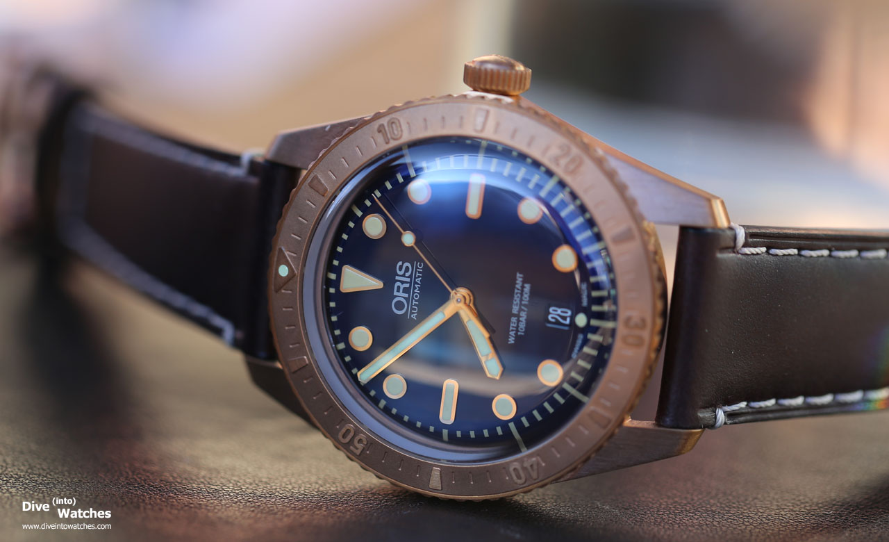 Die Uhr selbst basiert auf der 2015 eingeführten Sixty-Five Diver, ist aber im Durchmesser von 40 auf 42 mm angewachsen. Das Zifferblatt ist dunkelblau, Zeiger und Indexe mit Rotgold beschichtet. Das gewölbte Saphirglas, 100 Meter Wasserdichtheit und das Oris Kal. 733 (basierend auf Sellita SW200) sind ebenfalls schon von der kleinen Schwester bekannt. Ausgeliefert wird die Carl Brashear Limited Edition in einer braunen Holzbox ab April 2016, der Preis liegt voraussichtlich bei CHF 2’600.-