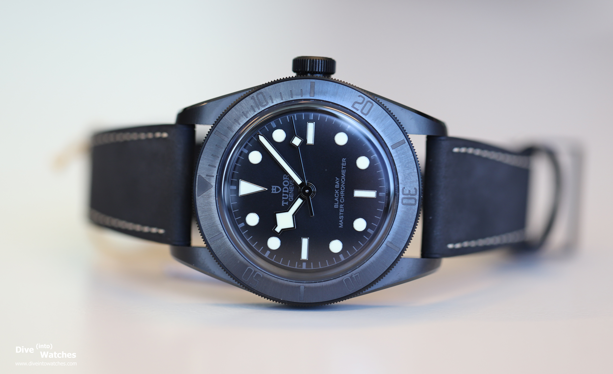 Während der Gehäusemitteilteil und die Lünetteneinlage aus Keramik sind, ist der Boden, die Krone und der Drehring aus Metall (mit PVD). Tudor verzichtete zudem auf eine Leuchtmarkierung auf dem Drehring, was hinsichtlich der weissen Zeiger etwas inkonsequent ist.