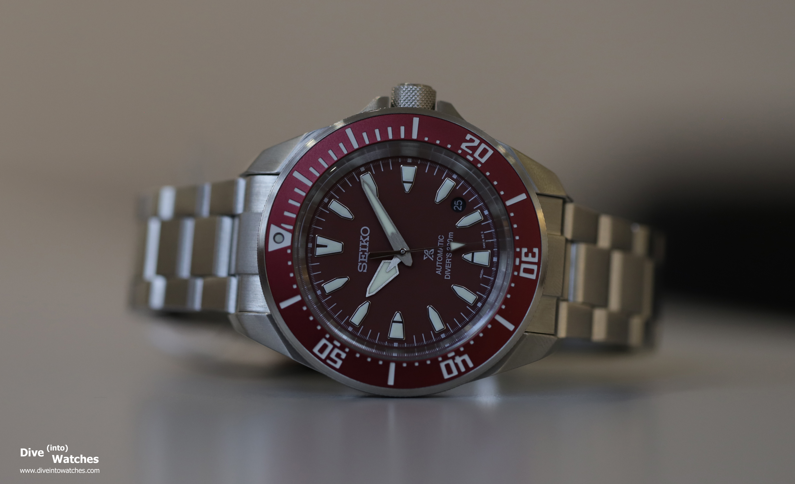 Die Samurai ist seit jeher eine ebenso eigenständige wie moderne mechanische Uhr, und daran hat sich auch heute nichts geändert. Umgekehrt gehören die Krone und der Drehring jetzt nicht wirklich in die Kategorie „perfekte Griffigkeit“, was man ihr aber gerne verzeiht. Die jüngste Generation gibt’s mit schwarzem (Ref. SRPL13K1) oder rotem Zifferblatt (Ref. SRPL11K1), beide mit Stahlband, und als geschwärzte Variante (Ref. SRPL15K1) mit Silikonband und cremefarbener Leuchtmasse. Die Preise starten bei €600.00 für die SRPL15K1, mit Metallband steigt der Preis auf €650.00. Ein paar Bilder der SRPL11K1 (Grossansicht nach Klick):