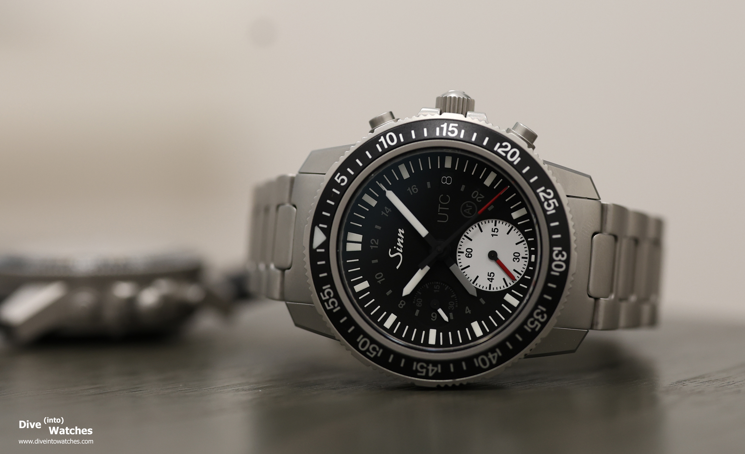 Zwei weitere Neuheiten aus Frankfurt kommen in Form des Tauch-Chronographen 613 St „mit 60er Teilung bei der Stoppminute“ (dem weissen Hilfszifferblatt bei 6 Uhr) und mechanischen „Uhrwerken, deren Entwicklung von unserem Chronographenkaliber SZ02 inspiririert wurde.“ Die 41 mm grosse und bis 500 Meter wasserdichte Uhr gibt’s in zwei Ausführungen, als reinen Chrono (Basis SW535) oder als 613 ST UTC (Basis SW515) mit zweiter Zeitzone auf 24-Stunden-Basis.
