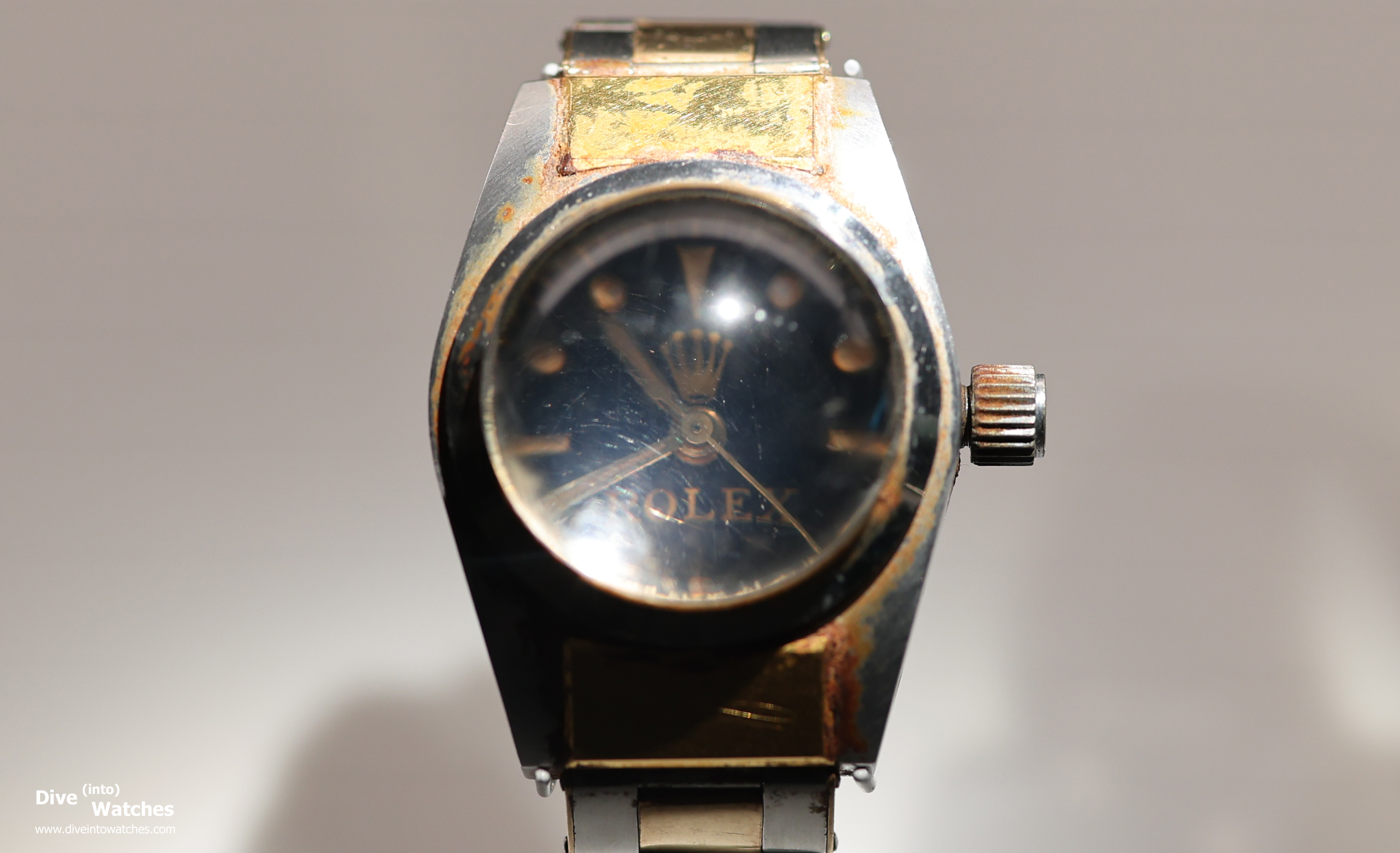 Auch wenn ich längst nicht alle Taucheruhren-Neuheiten an der Watches and Wonders (14. bis 20. April 2026) gesehen habe, die Sonderausstellung am Rolex-Stand zum 100jährigen Jubiläum des Oyster-Gehäuses dürfte vermutlich schwierig zu toppen sein: erstens hat Rolex eine Deep Sea Special aus den 50er-Jahren aus dem Archiv geholt. – Für mich die bislang mit Abstand früheste Uhr der Serie, die ich sehen (und fotografieren) konnte. Zudem zeigt es, dass schon die erste Baureihe in Bi-Color umgesetzt worden ist.