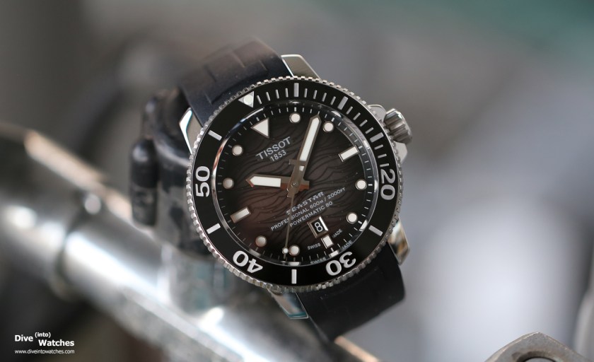 Der eingangs gemachte Vergleich zu Seiko hat aber auch noch einen anderen Grund: Sowohl Mido (Ocean Star 200C) als auch Tissot setzen im 2021 verstärkt auf Zifferblätter mit Wellen-Struktur. Selbstverständlich darf Omega mit der Seamaster 300 von 1993 hier als Urheber gelten, aber die jüngste Ausführung von Tissot erinnert dennoch etwas an die beiden Seiko „Save the Ocean“ Sonderserien von 2019. Ungeachtet dessen wirkt das gravierte Zifferblatt dank der Struktur natürlich etwas lebendiger, was allenfalls auch den insgesamt grossen Durchmesser abfedert.