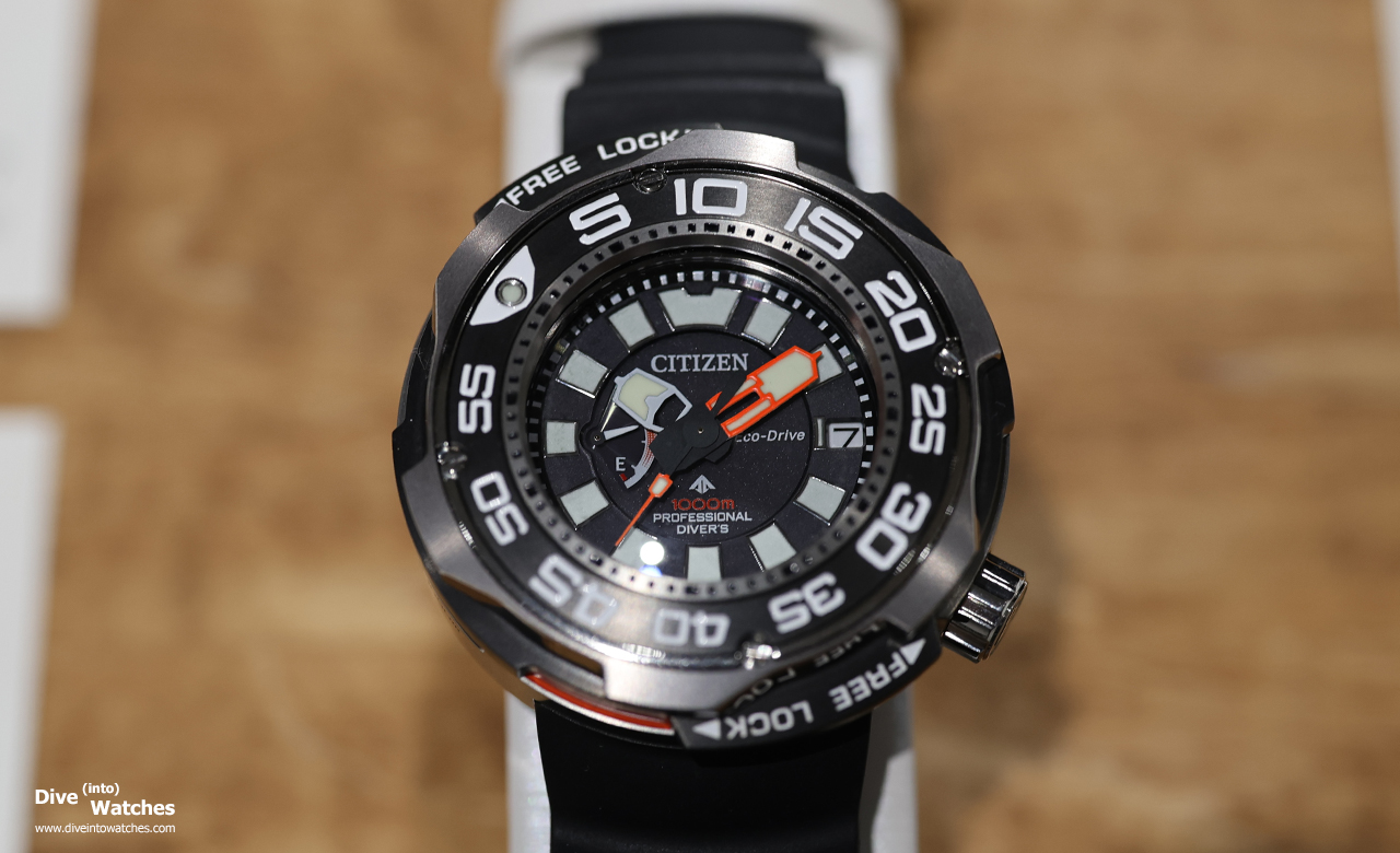Citizen kann dieses Jahr nicht nur den 100. Geburtstag der eigenen Marke feiern, sondern auch den 35. Geburtstag der Promaster-Reihe. Eines der dafür vorgesehenen Jubiläums-Modelle kommt in Form der Promaster „Fujitsubo“ mit blauem Drehring und metallic-blauem Zifferblatt (Ref. NB6026-56L): „The stylish, new diver features a lightweight and scratch-resistant Super Titanium case with platinum DLC measuring…