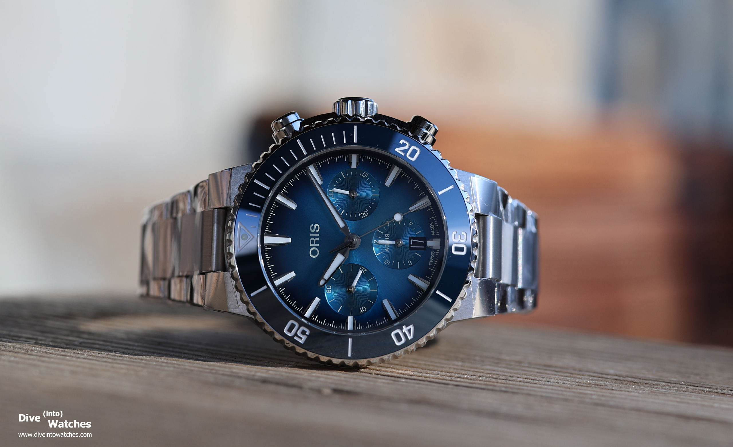 Nach der überarbeiteten Dreizeiger-Aquis kommt jetzt auch das Chronographen-Modell zu einem Facelift. Den Anfang macht die blaue Ref. 01 771 7793 4155-07 8 23 01PEB mit einem 43,5 mm grossen und bis 300 Meter wasserdichten Gehäuse aus Edelstahl. Werk ist das Kaliber 771 (SW510) mit 62 Stunden Gangreserve, das Lünetten-Inlay ist aus Keramik. „Zusätzliche Eleganz…