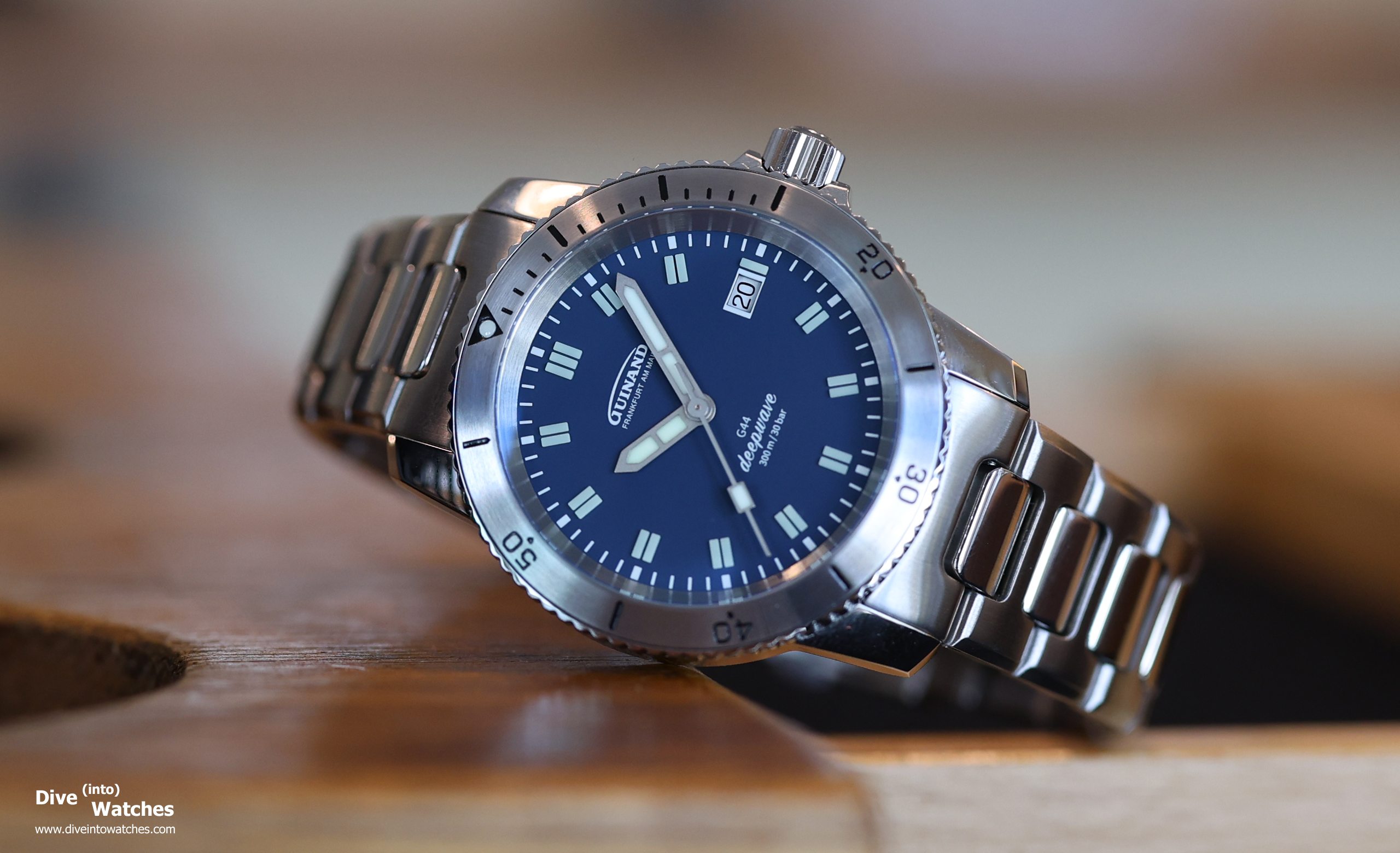 Die deutsche Uhrenmarke Guinand lanciert mit der G44 Deepwave eine bis 300 Meter wasserdichte Taucheruhr, einmal als Deepwave M mit glasperlgestrahltem Finish und als Deepwave S mit satiniertem Edelstahlgehäuse (der Durchmesser beträgt 40,75 mm). Beim Zifferblatt kommen applizierte Leuchtelemente zum Einsatz, der Minutenzeiger, der Leuchtpunkt auf der Lünette und der Sekundenzeiger sind dabei blau nachleuchtend,…