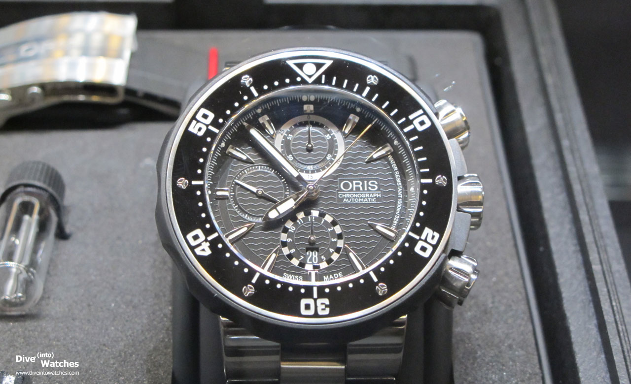 Auch von Oris gibt’s heuer natürlich wieder News, die auffälligste davon trägt den Namen Prodiver (674.7630.71.54.MB). Die 51mm Uhr im Titangehäuse bringt 1000 Meter Wasserdichtheit, ein integriertes Heliumventil und eine Keramik-Lünette mit – und besonders interessant dürfte der Schliessenmechanismus des Chronographen sein, der stark nach einer neuen Art Schnellverstellung riecht. Die am Rand gummierte Lünette…