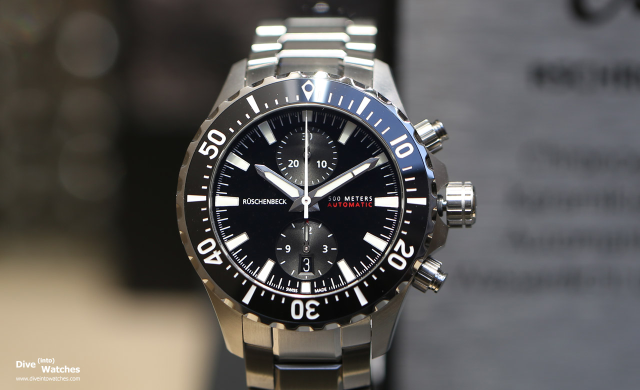 Bei Rüschenbeck setzt man derzeit verstärkt auf das Konzept Eigenmarke: unter dem Titel „The Watch“ bietet der Dortmunder Juwelier seit Herbst mit nicht minder bewundernswertem Selbstbewusstsein gleich „absolute Must-Haves für jeden Uhrenliebhaber“ (Zitat Website) an, darunter auch ein Taucheruhrenmodell, das es als Chronograph (R5 Chrono) und Dreizeiger-Uhr (R4 Diver) in mehreren Ausführungen gibt. Die 42 mm grosse…