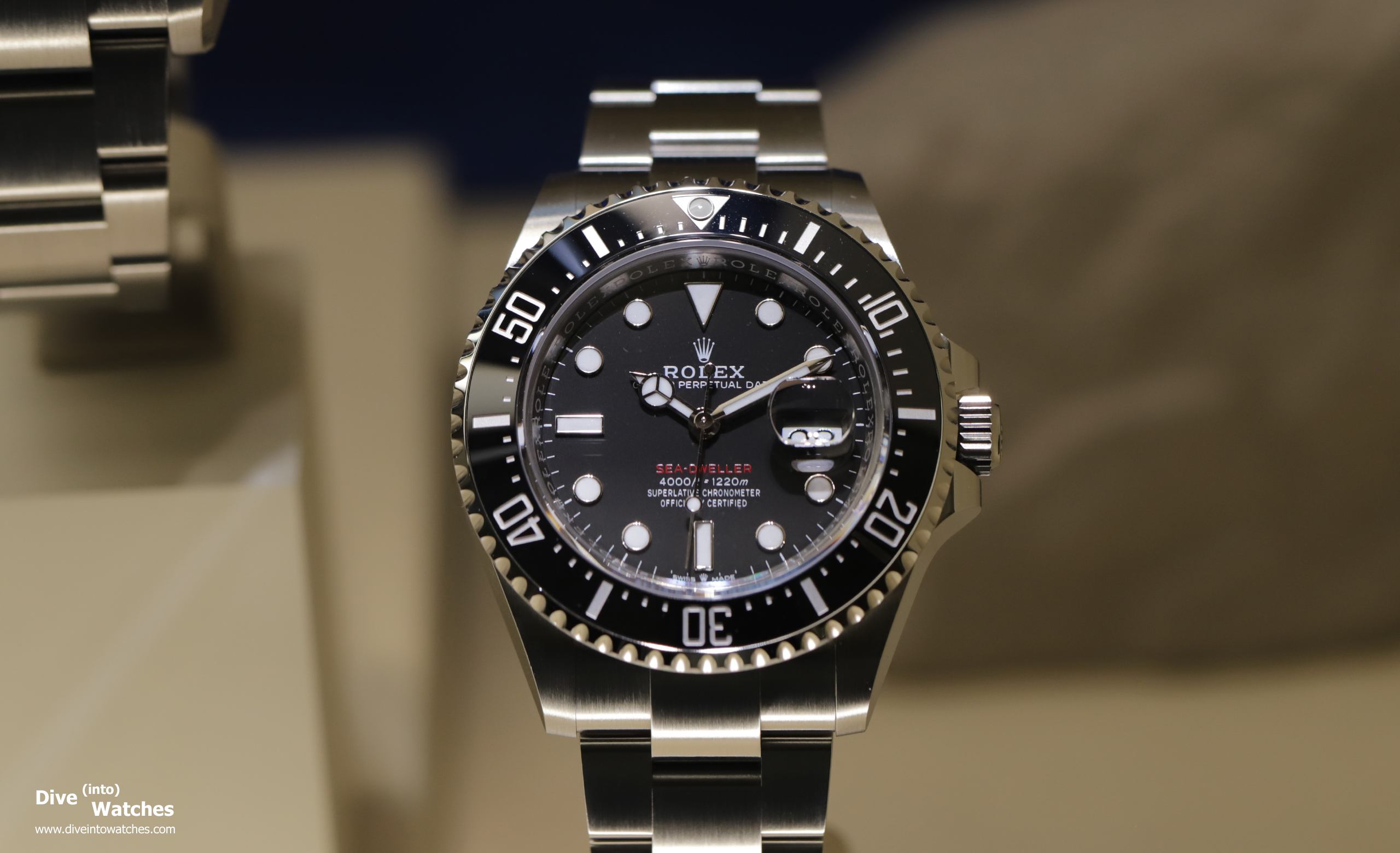 Interessanterweise haben sich die Gerüchte fast ausnahmslos als wahr erwiesen: Rolex spendiert der Sea-Dweller 4000 eine Lupe und einen roten Schriftzug zum 50jährigen Jubiläum und vergrössert das Gehäuse gleichzeitig auf 43 mm. Damit einher gegangen ist auch ein 0,1 mm dickeres Glas, um die Wasserdichtheit unverändert zu belassen. Im Innern tickt neu das Kal. 3235.…