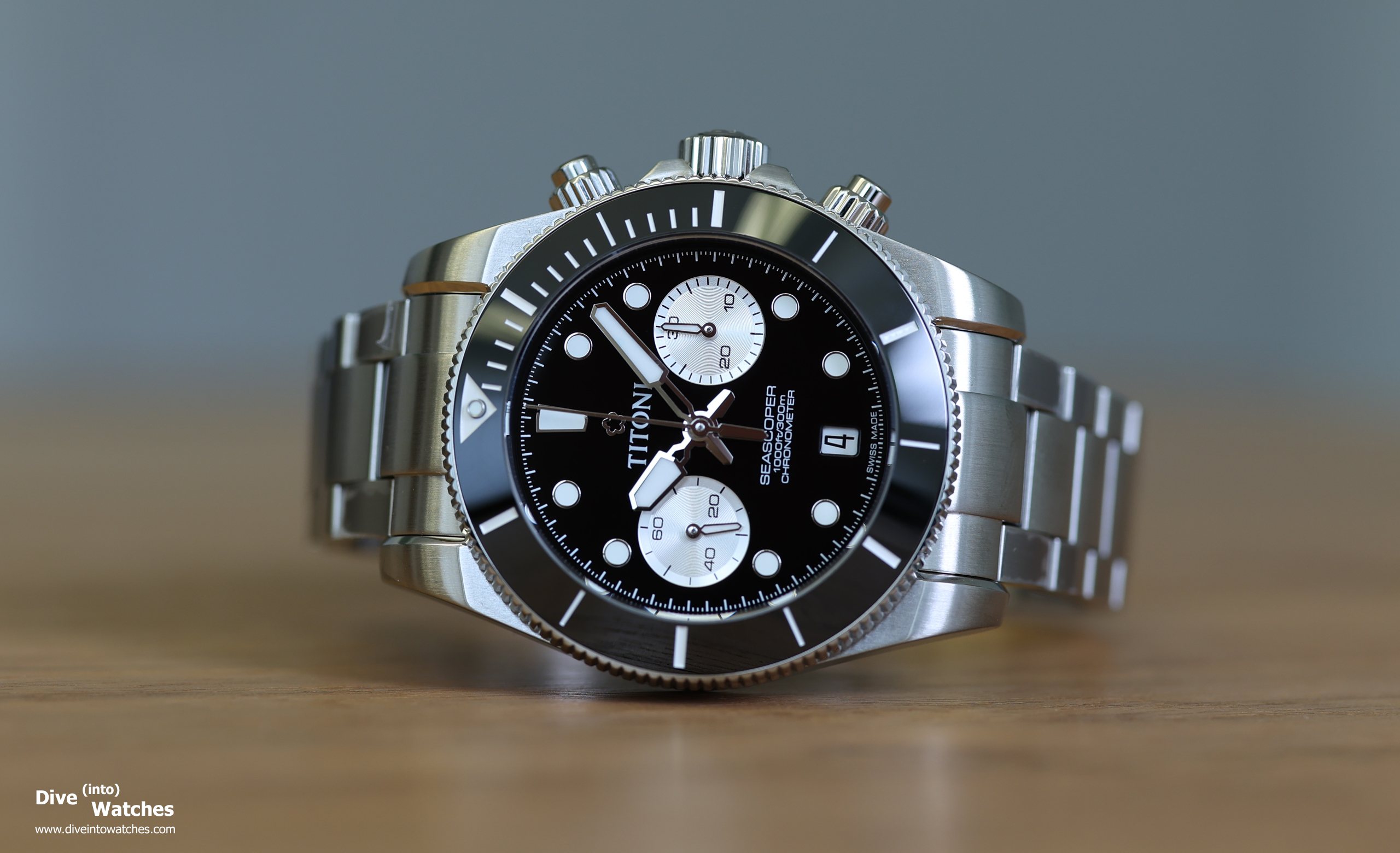 Das Grenchner Familienunternehmen Titoni bringt von der Seascoper nun auch ein Chronographen-Modell in vier Ausführungen: mit schwarzem Zifferblatt (Ref. 94300 S-BK-731), mit blauem Zifferblatt (Ref. 94300 S-BK-732) oder mit grünem Zifferblatt (Ref. 94300 S-BK-733), dazu kommt eine CHF 100.00 teurere Bi-Color-Umsetzung mit Gelbgold-farbener PVD-Beschichtung (Ref. 94300 SY-BK-731) und DLC-beschichteten Drückern. Werk ist in allen Fällen…