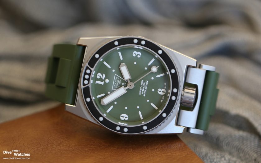 Mit der GF40188 bringt ZRC eine etwas modischere Interpretation der 1964 „French Navy Reissue“ (mehr über das Modell gibt’s hier) mit olivegrünem Zifferblatt und passendem Kautschukband. Während die Gestaltung insgesamt eher an ein amerikanisches Armeefahrzeug des zweiten Weltkriegs denn an eine Taucheruhr erinnert, bleiben die restlichen Daten unverändert: 40.5 mm Gehäuse mit 300 Meter Wasserdichtheit,…
